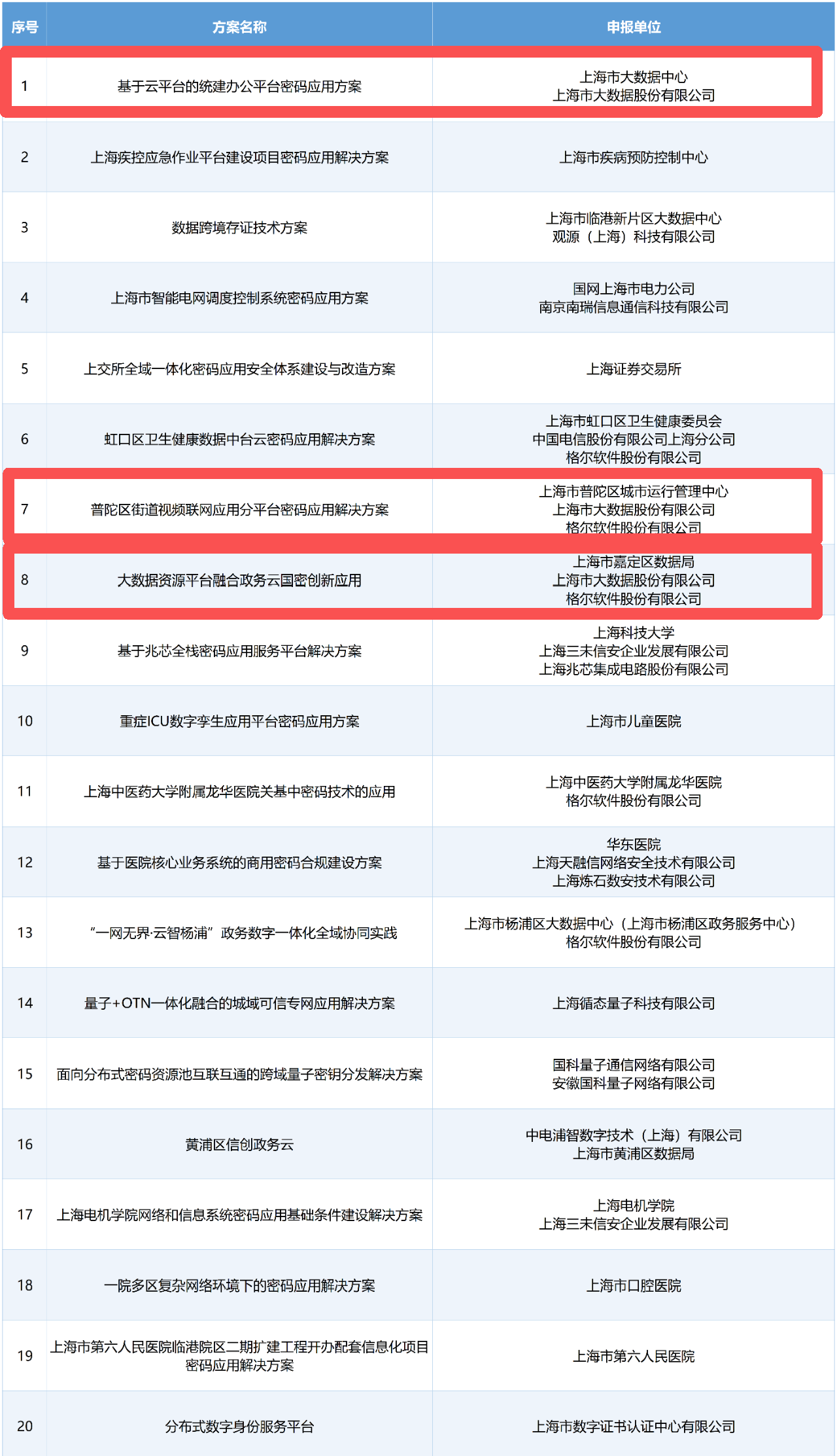 为全面贯彻落实《中华人民共和国密码法》《商用密码管理条例》,积极响应国家建设网络强国的号召,加快推进密码应用与创新发展,促进以密码技术为核心的网络安全体系建设,更好地为上海市数字经济发展保驾护航。市商用密码行业协会在市密码管理局的指导下,面向协会会员单位、我市商用密码从业单位和应用单位组织开展2025年度上海市优秀密码应用解决方案征集与评选工作。上海大数据股份三项方案入选2025年度上海市优秀密码应用解决方案。