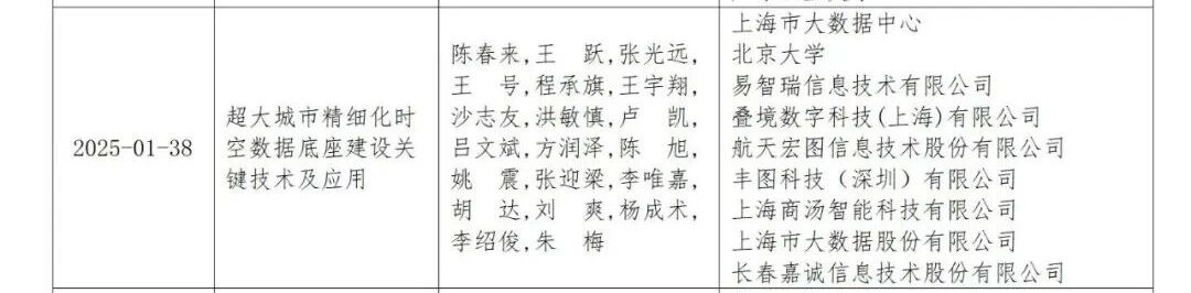 近日,中国地理信息产业协会公布了2025年度地理信息科学技术奖评选结果,上海大数据股份与上海市大数据中心、北京大学等单位联合完成的“超大城市精细化时空数据底座建设关键技术及应用”项目成果,荣获2025地理信息科技进步一等奖。